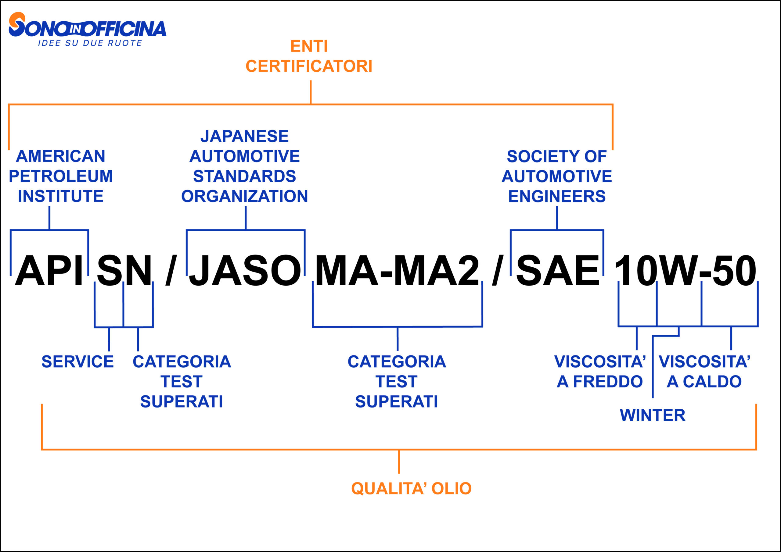 Le lettere dopo l’acronimo dell’istituto di controllo, indicano le caratteristiche che l’olio, è in grado di sopportare.