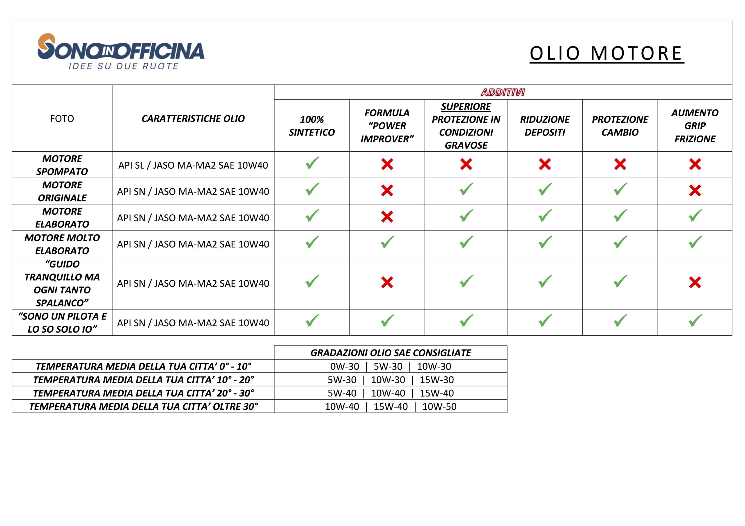 - come scegliere la gradazione giusta per il tuo motore? Con questa tabella!